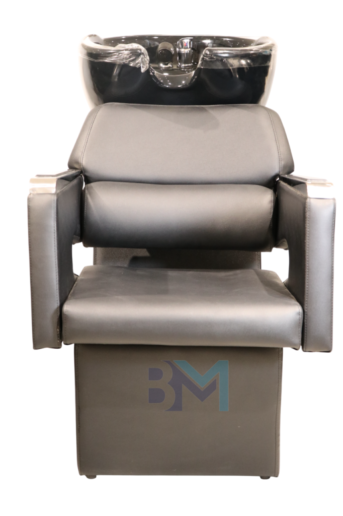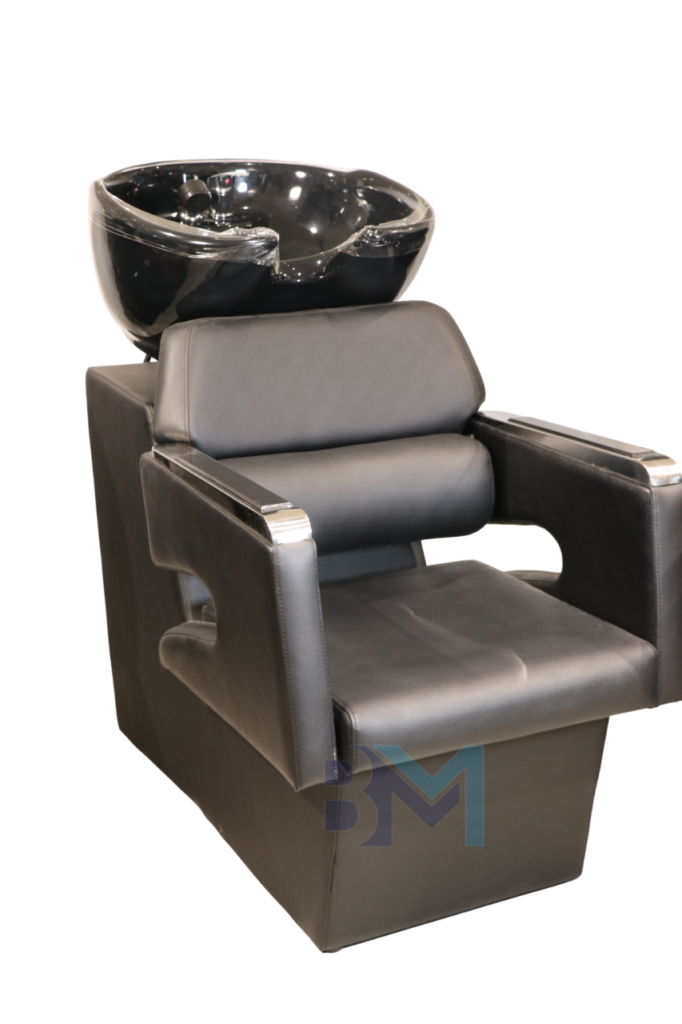 Lavacabezas negro con apoyabrazos cromados acolchados