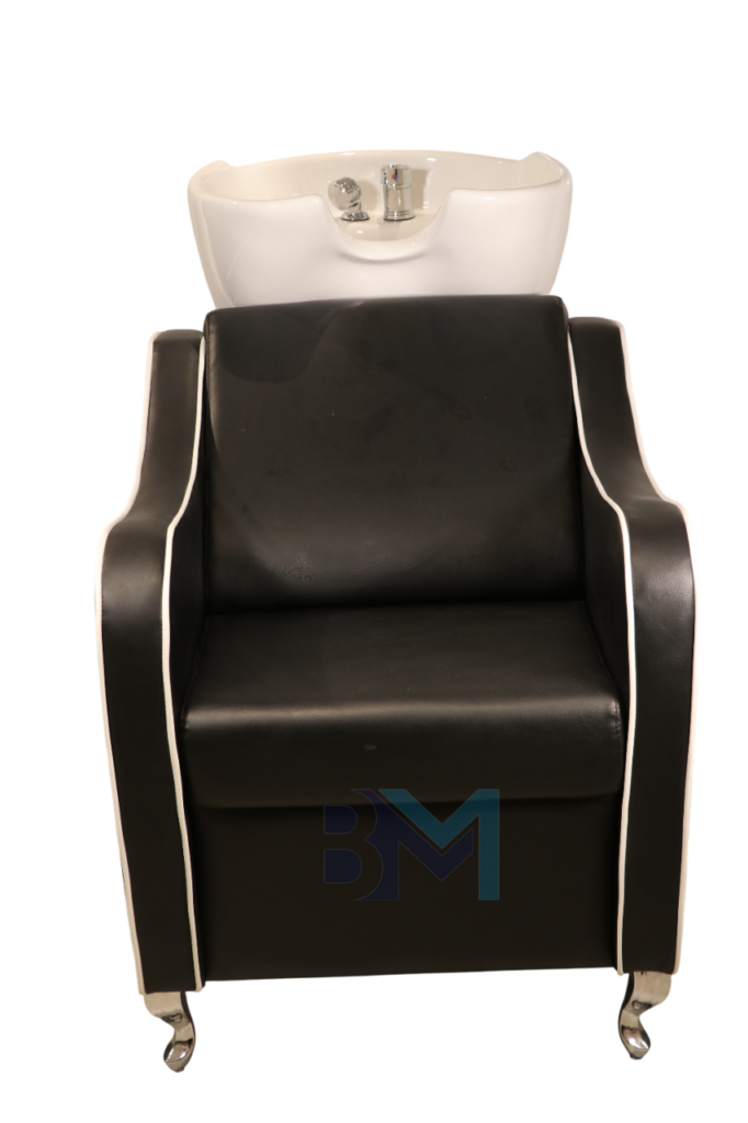 Lavacabezas negro con delicadas líneas blancas y reposapiés manual (copia)