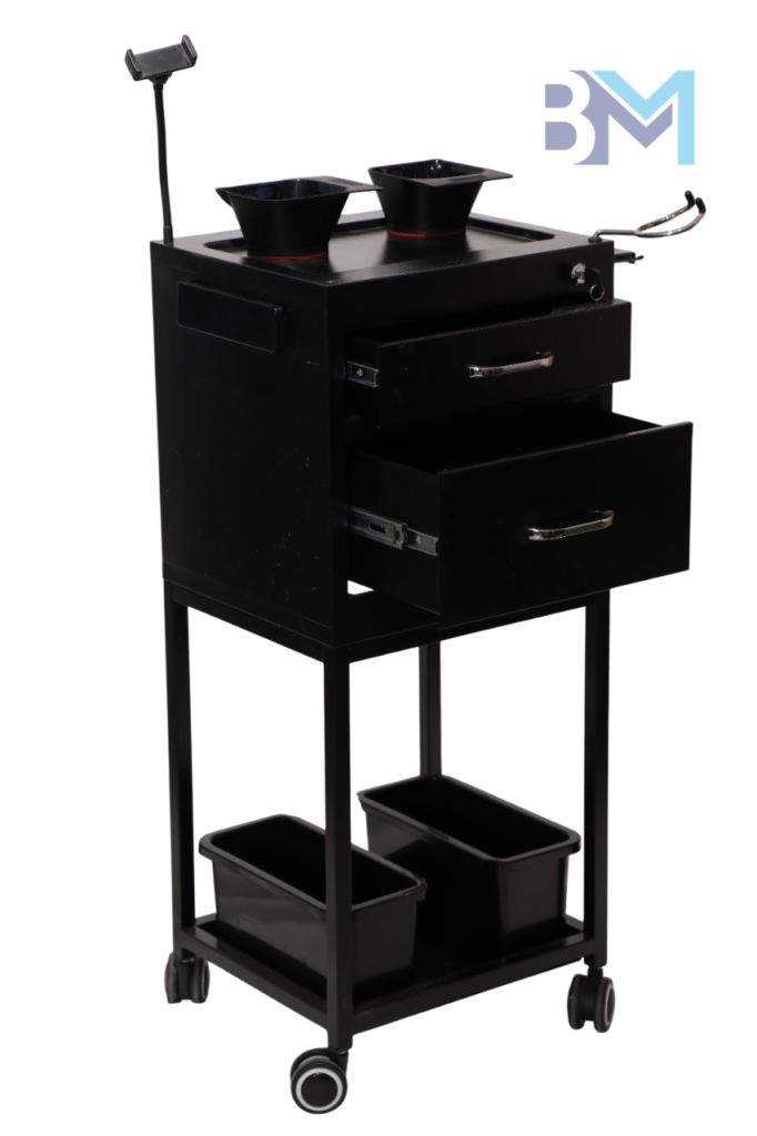 Carrito auxiliar de barbería y peluquería con soporte mobil