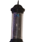 - Cuenta con una base de acero para el montaje y una cubierta de plástico acrílico duradero en forma de remolino.