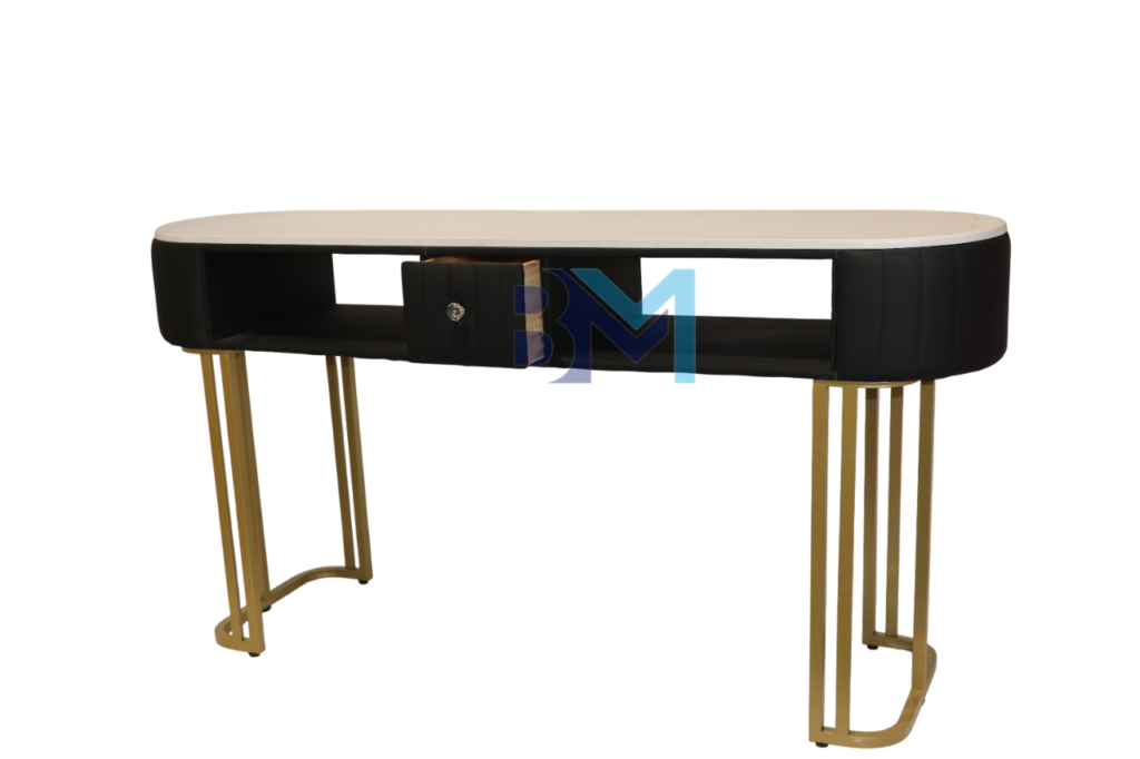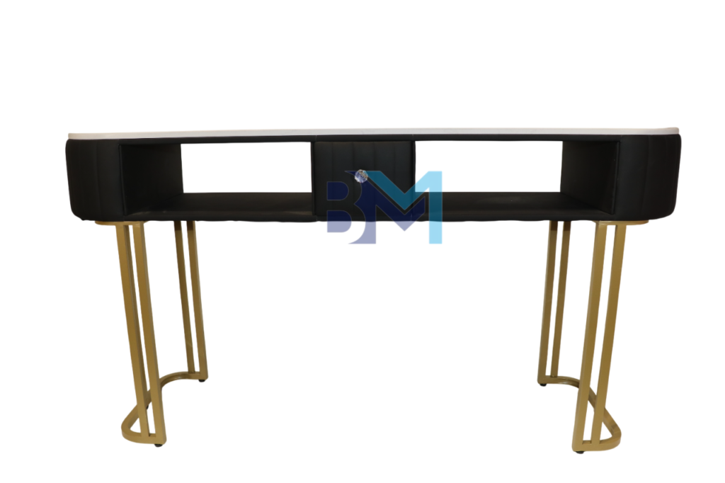 Mesa de manicura doble en polipiel negro con tope de piedra tipo mármol