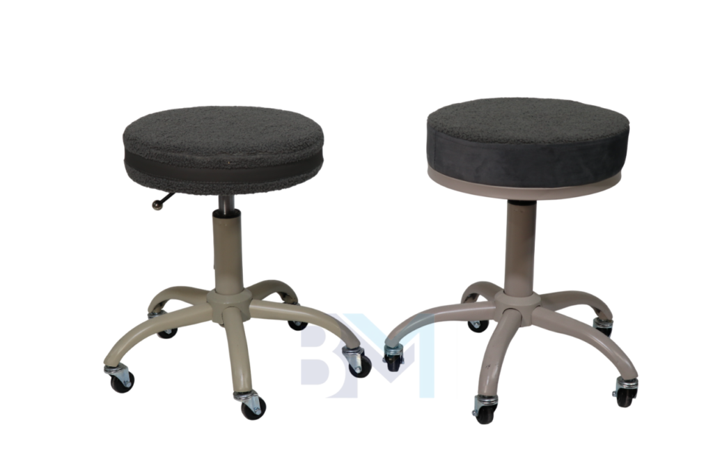 - Base de acero cromado de gran estabilidad y sistema hidráulico para regulación de altura mediante palanca