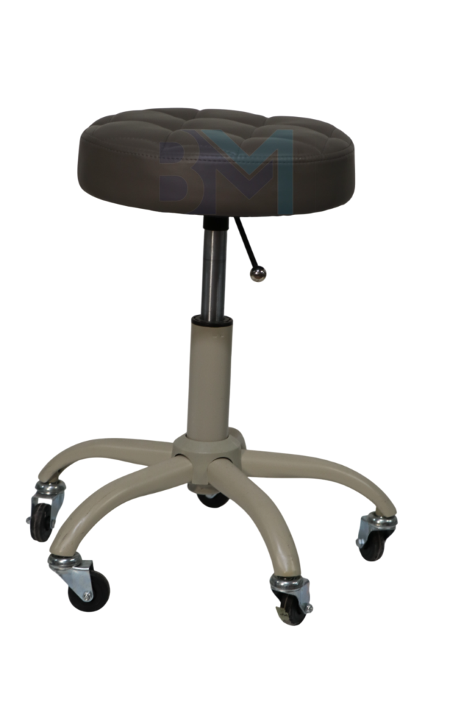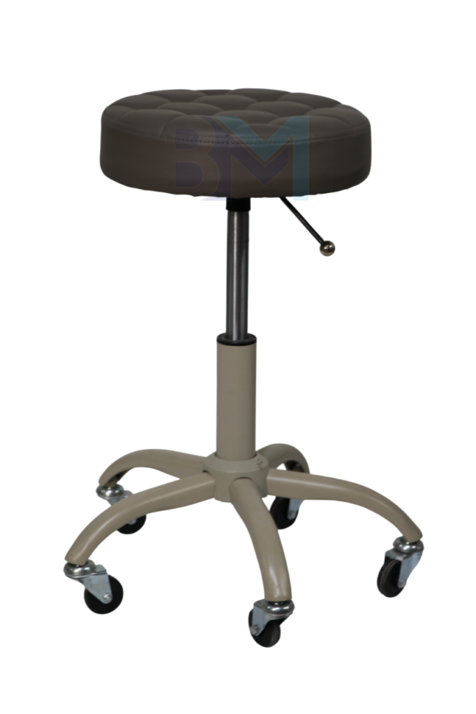 - Base de acero cromado de gran estabilidad y sistema hidráulico para regulación de altura mediante palanca