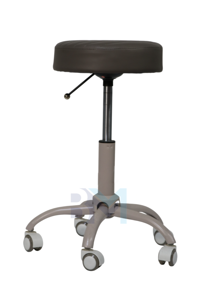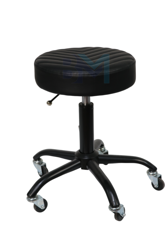 - Base de acero cromado de gran estabilidad y sistema hidráulico para regulación de altura mediante palanca