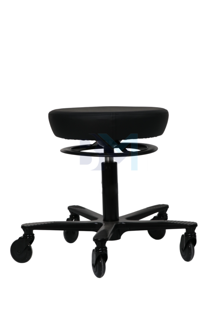 - Base de acero cromado de gran estabilidad y sistema hidráulico para regulación de altura mediante palanca