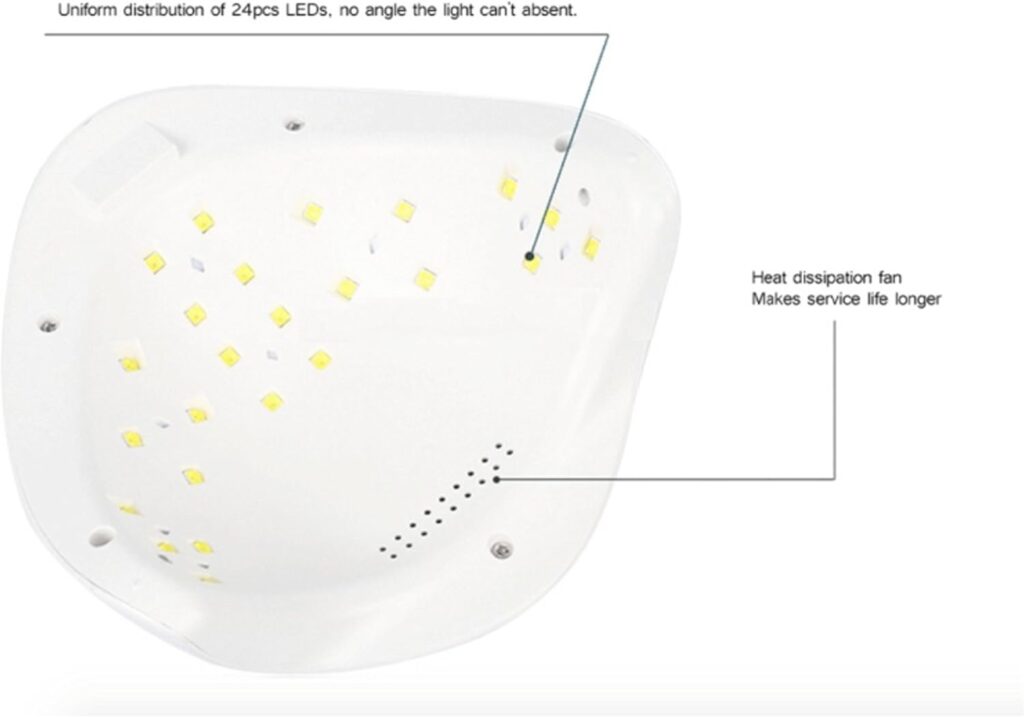 Lámpara profesional UV LED para uñas con fuente luminosa de 24 LED, potencia máxima de 48 W y con una interacción simplificada por la presencia de una pantalla,  Es muy fácil de usar gracias a los sensores automáticos de inducción por infrarrojos y permite también configurar el temporizador, lo que la hace perfecta para todos los tipos de gel para uñas de bajo calor, con ahorro de tiempo y energía. La luz blanca no daña los ojos ni la piel y garantiza que el color del gel no se desvanezca.