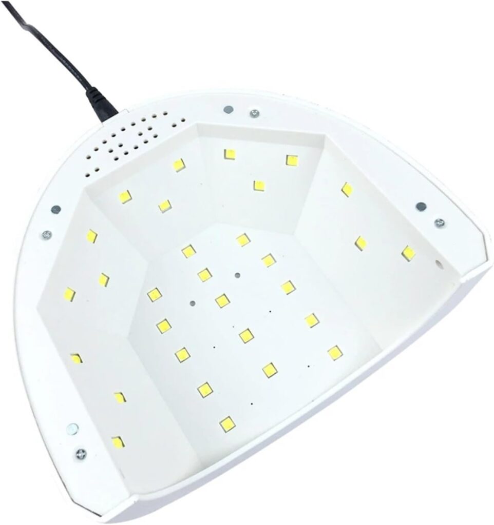 Lámpara profesional UV LED para uñas con fuente luminosa de 24 LED, potencia máxima de 48 W y con una interacción simplificada por la presencia de una pantalla, Es muy fácil de usar gracias a los sensores automáticos de inducción por infrarrojos y permite también configurar el temporizador, lo que la hace perfecta para todos los tipos de gel para uñas de bajo calor, con ahorro de tiempo y energía. La luz blanca no daña los ojos ni la piel y garantiza que el color del gel no se desvanezca.