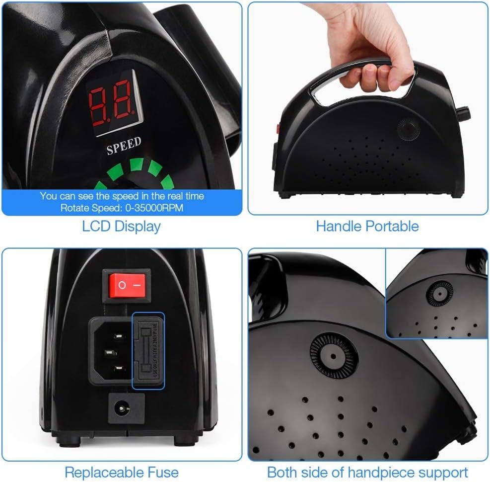 Con una velocidad de hasta 35.000 revoluciones por minuto, este torno ofrece un rendimiento excepcional para realizar trabajos detallados con precisión. Además, viene equipado con 6 fresas y 6 esmeriladores, lo que te brinda la posibilidad de personalizar y perfeccionar tus diseños según tus necesidades y preferencias.