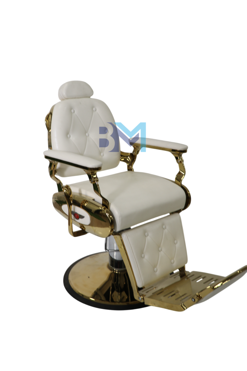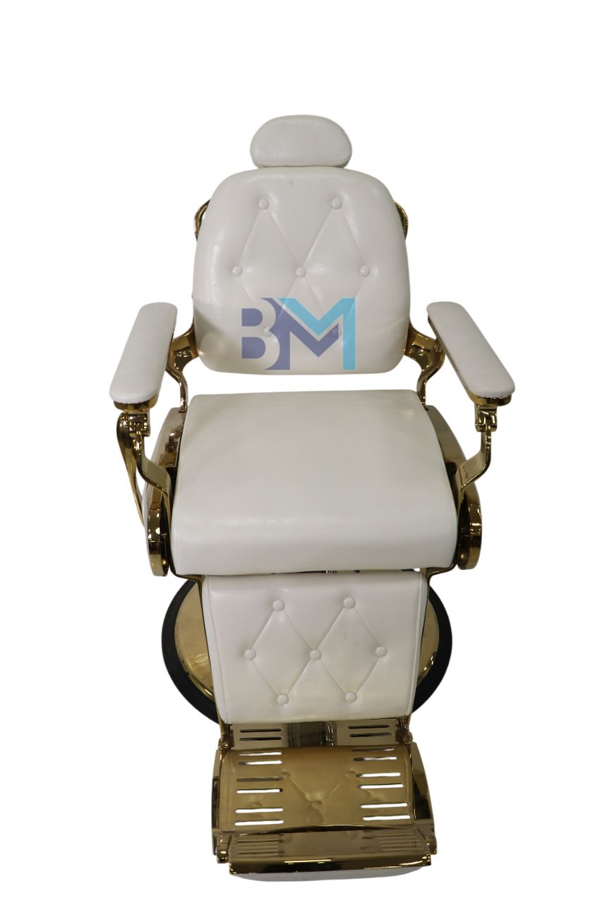 Sillón de barbería vintage blanco y dorado