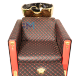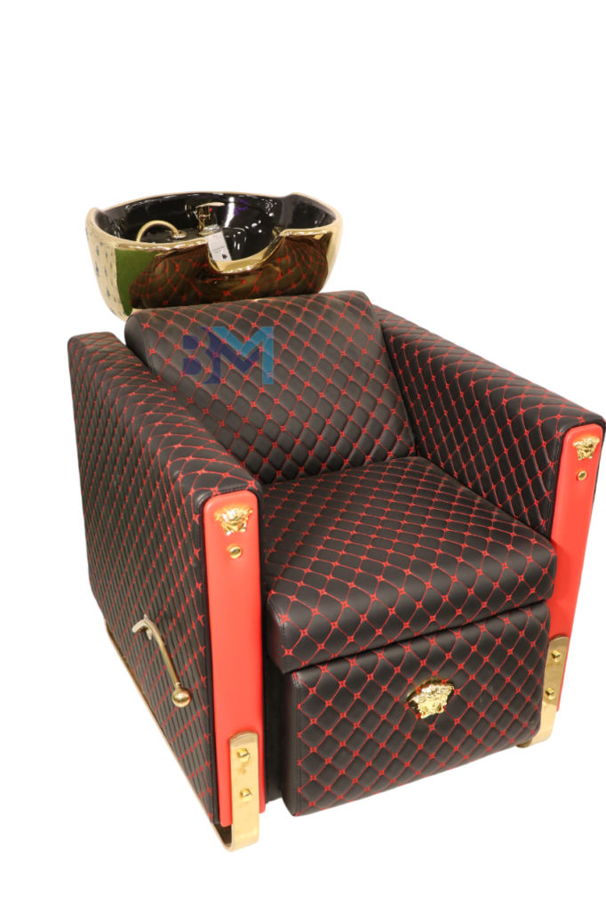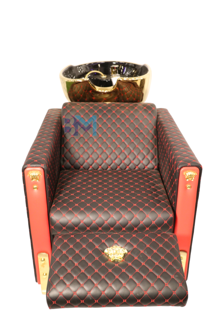 Lavacabeza clásico negro con detalles en rojo y dorado