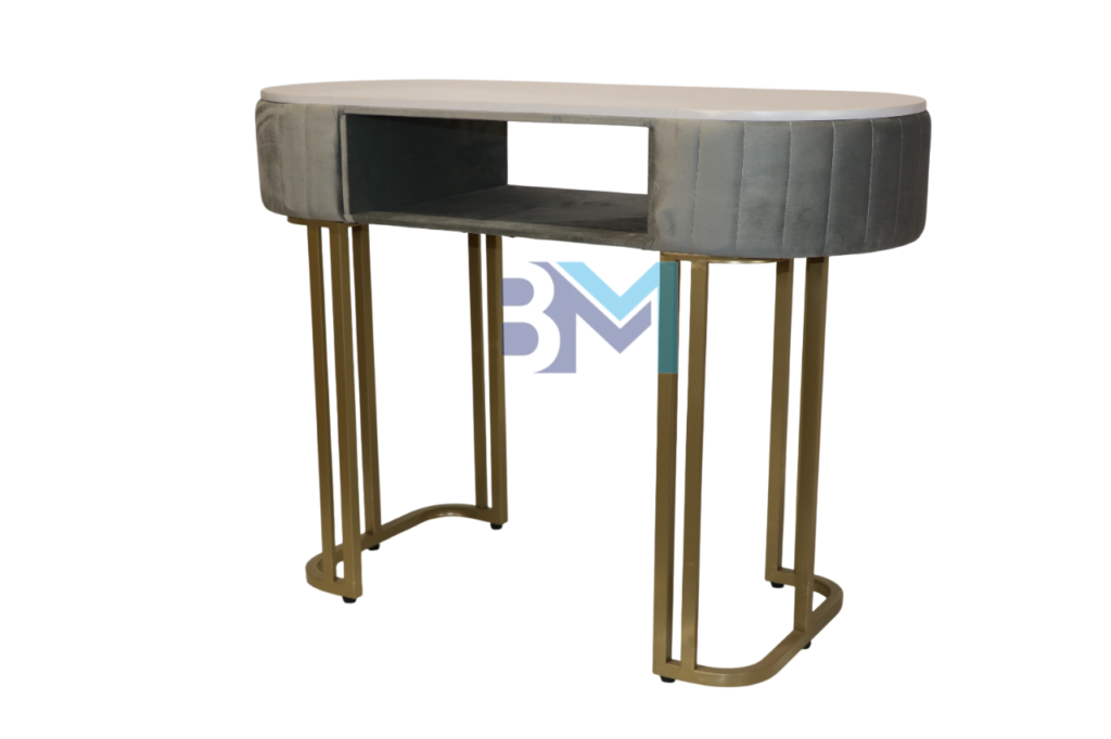 Mesa de manicura individual en terciopelo gris con tope de piedra tipo mármol
