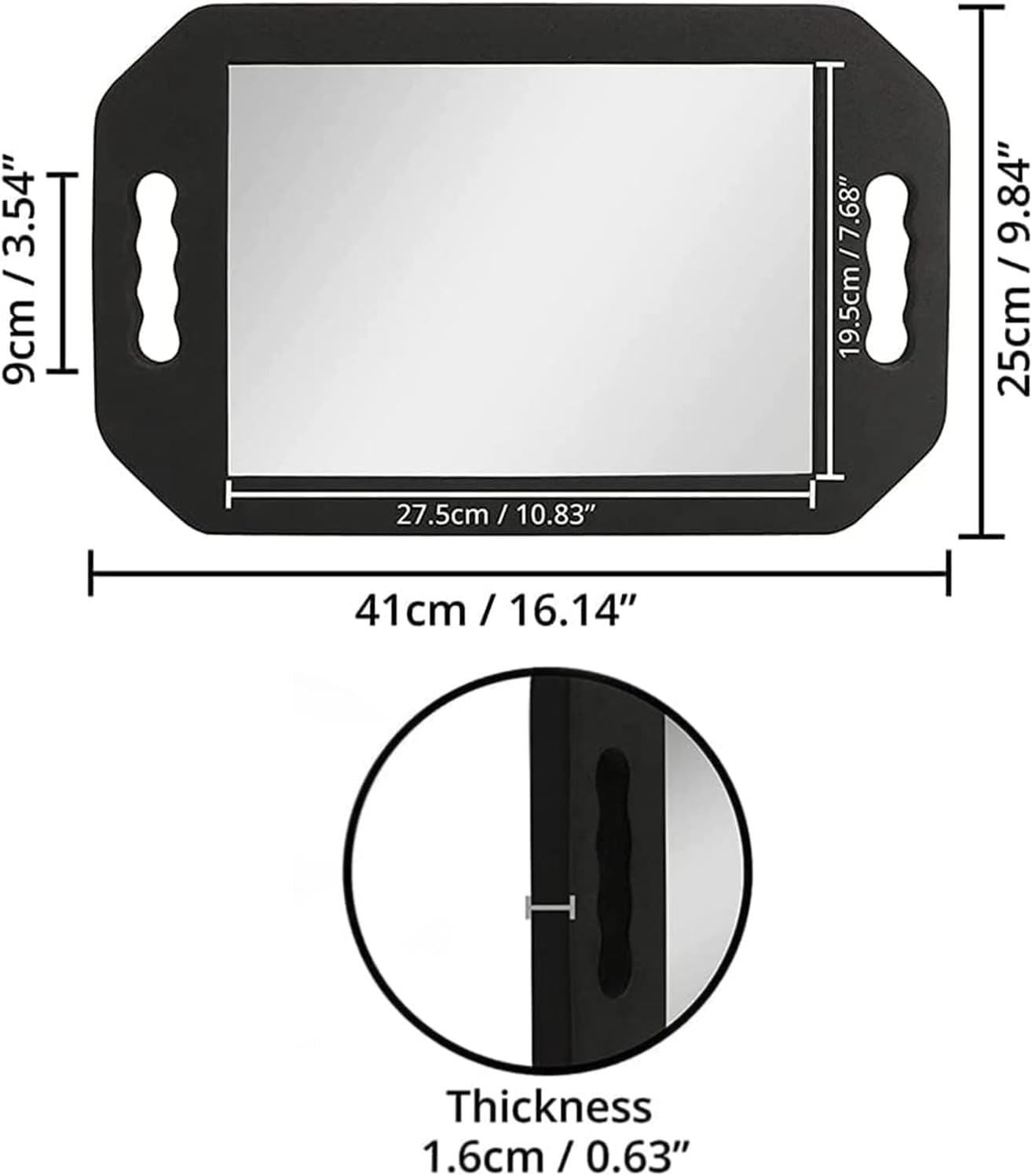 - Espejo de mano grande con manija.