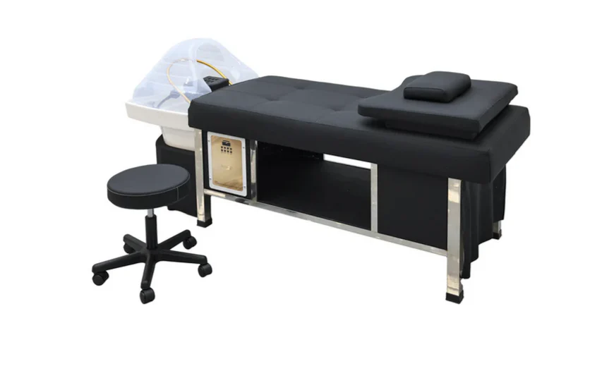 - Disfrute de lo último en tratamientos capilares japoneses con esta elegante camilla de masaje china. Esta camilla profesional cuenta con un módulo de lavabo para masajes y tratamientos capilares, función de vapor, un lujoso soporte para el cuello y una ducha multicolor. También puede utilizarse como camilla de tratamiento de tamaño completo con compartimentos para guardar toallas y lociones. La camilla está diseñada con materiales de alta calidad y un colchón impermeable para tratamientos capilares japoneses perfectos.