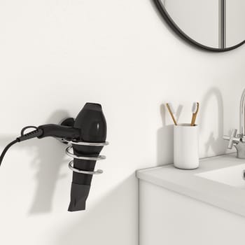 - Ideal para colocar el secador, evitando caídas, también mantiene el cable que no se lie. Diseño bonito actual.