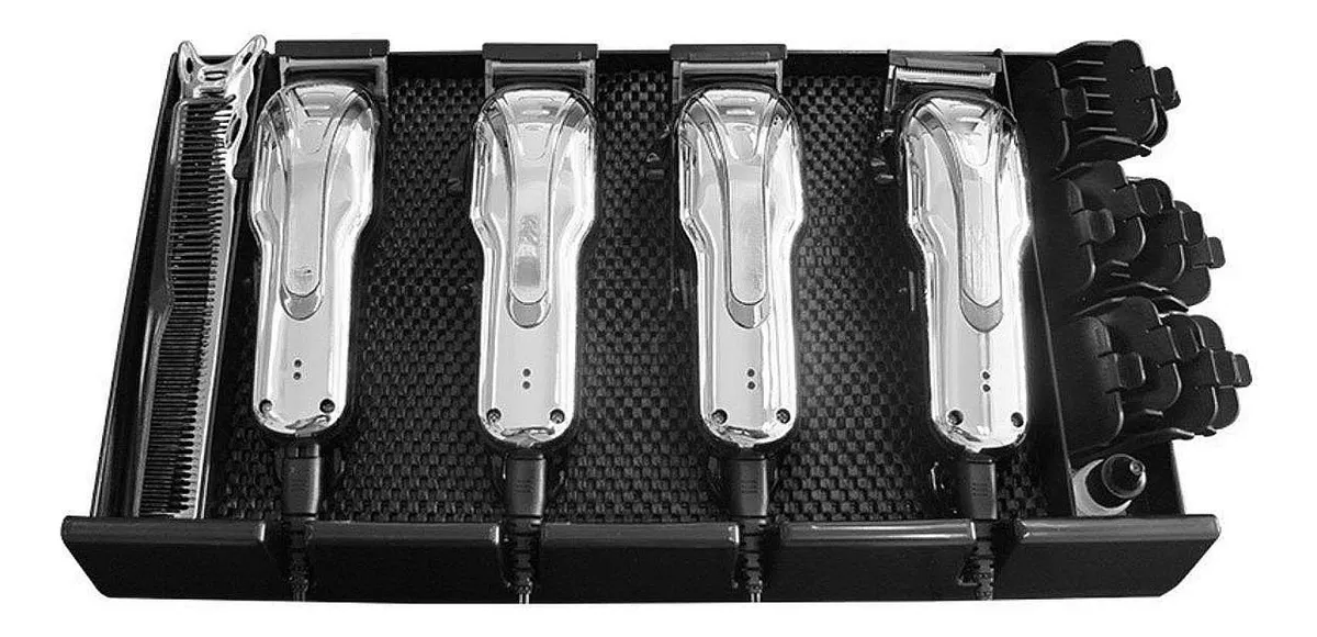 - Está diseñada con un amplio espacio para almacenar todas sus herramientas de corte de cabello, incluidas tijeras y peines, asegurando que todo lo que necesita está al alcance de una experiencia de barbería perfecta.