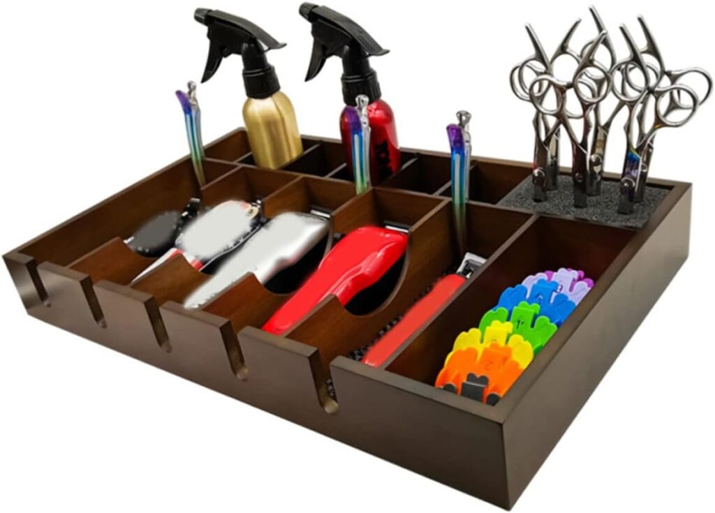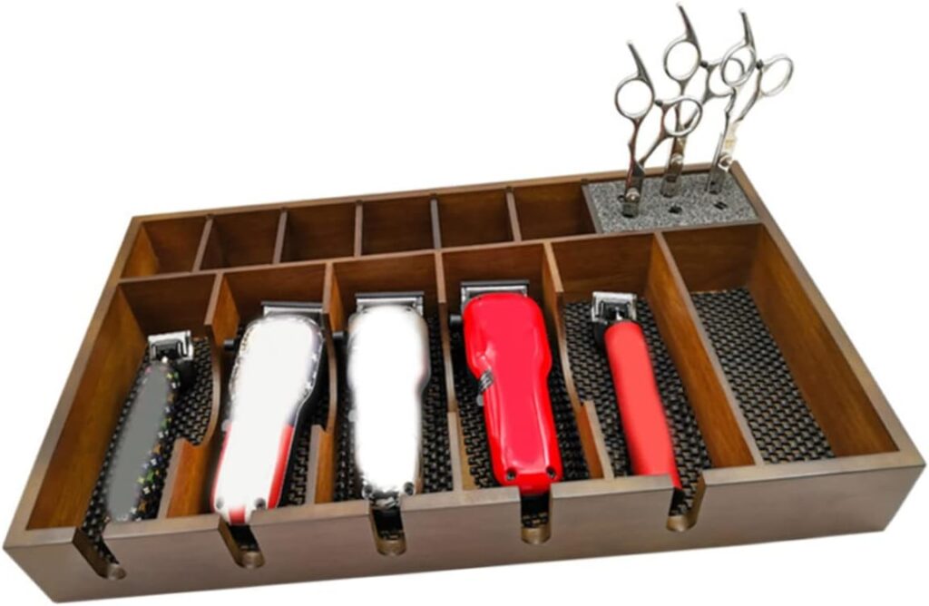 - Bandeja para cortapelos de peluquero, organizador de madera para cortapelos, bandeja profesional para maquinilla de afeitar de salón, estuche para cortapelos, peluqueros, estilistas, herramientas de salón