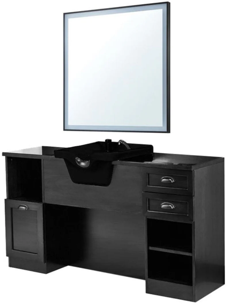 Tocador negro con lavacabezas