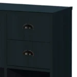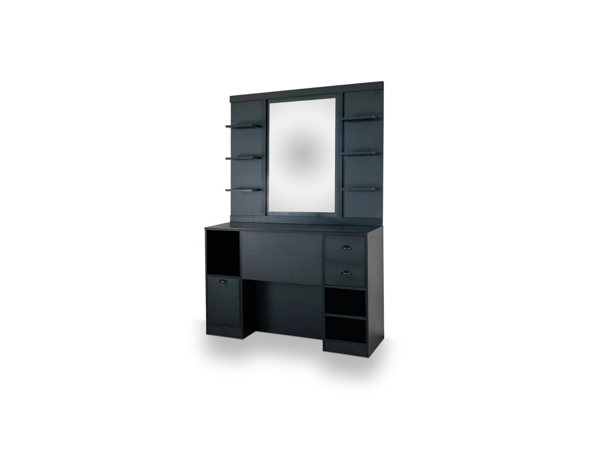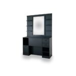 - Tocador de barbero acabado en melamina de madera oscura o clara.