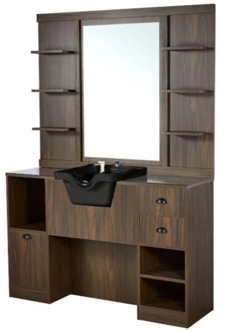 Espejo tocador marron osc con lavacabezas Oke