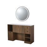 - Aparador de barbero acabado en melamina de madera oscura o clara.