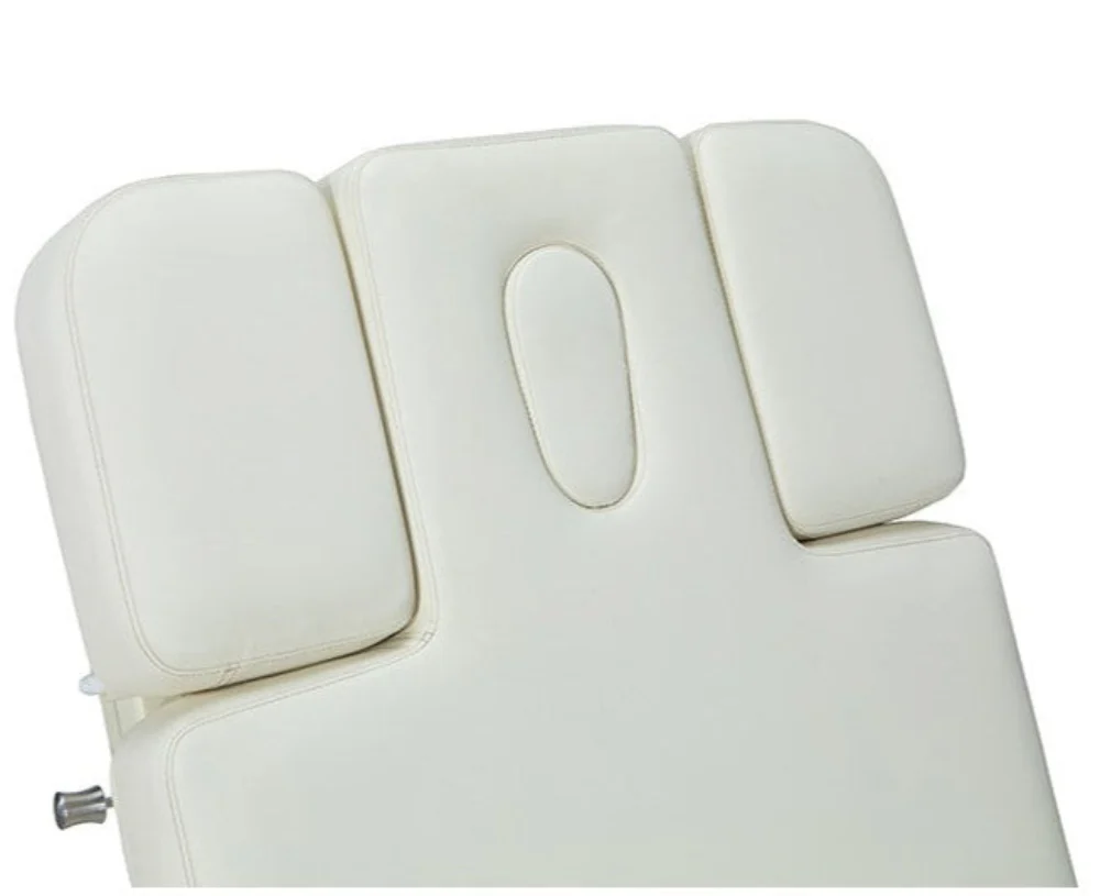 - Apoyabrazos y reposacabezas ajustables con orificio facial