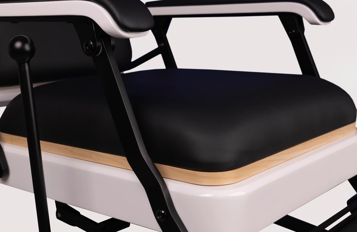 - Estructura del asiento y el respaldo de fibra de vidrio pintada en blanco.