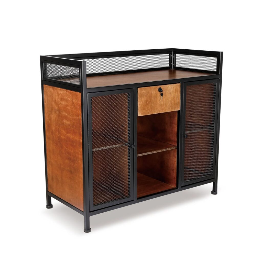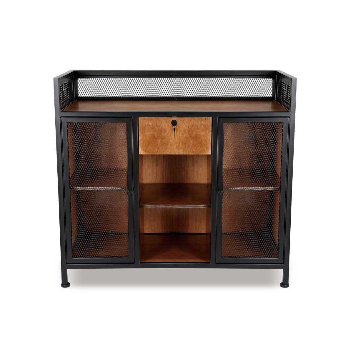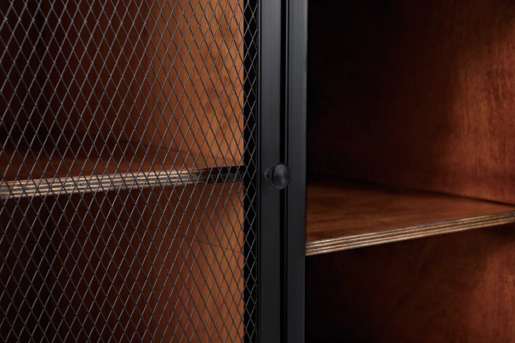 Puertas con malla metálica y estante
