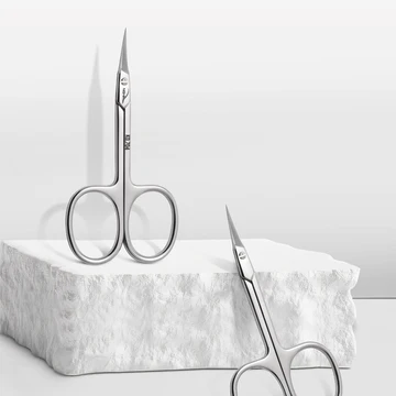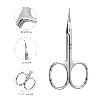 Tijeras De Manicura, Curvas, Acero Carbono - 3.5" (9 Cm), Para Cortar Cutículas, Niquelada, color Gris