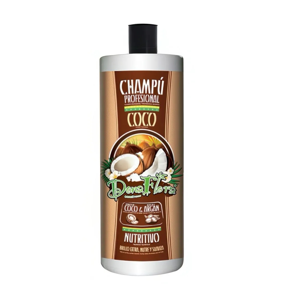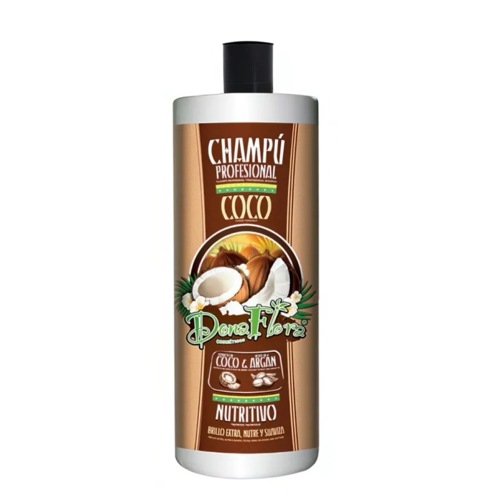 Dona Flora - Champú Nutritivo de Coco & Argán - Hidratación Intensa - Suavidad y Brillo Natural - Fortalece y Mejora Elasticidad del Cabello - 1000ml -