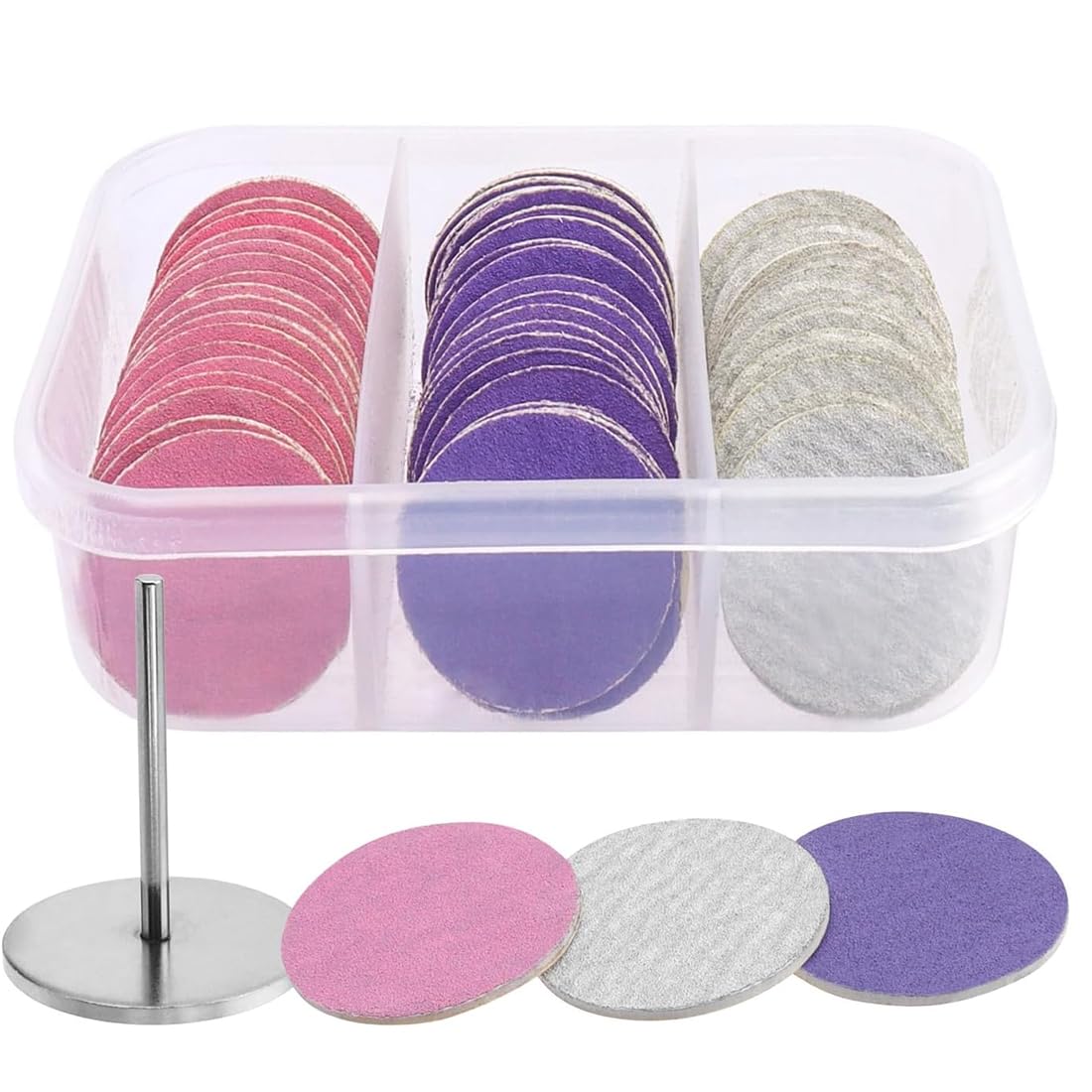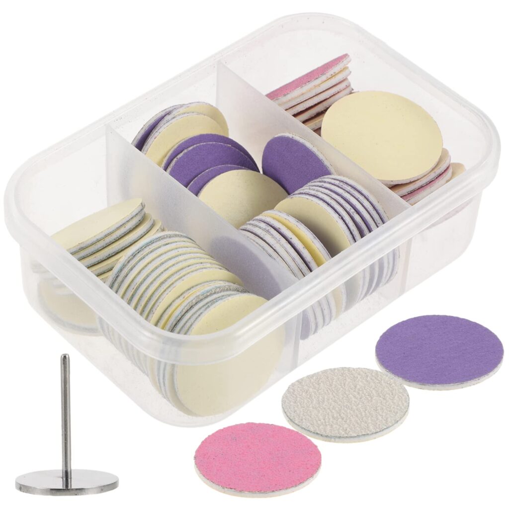 - Granos: Los discos vienen en diferentes granos (grueso, medio, fino) para ajustar la aspereza según la necesidad de la piel o uña.