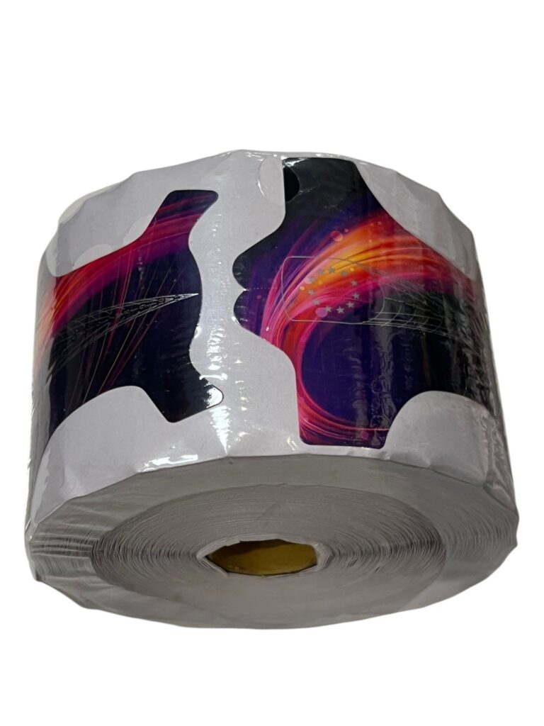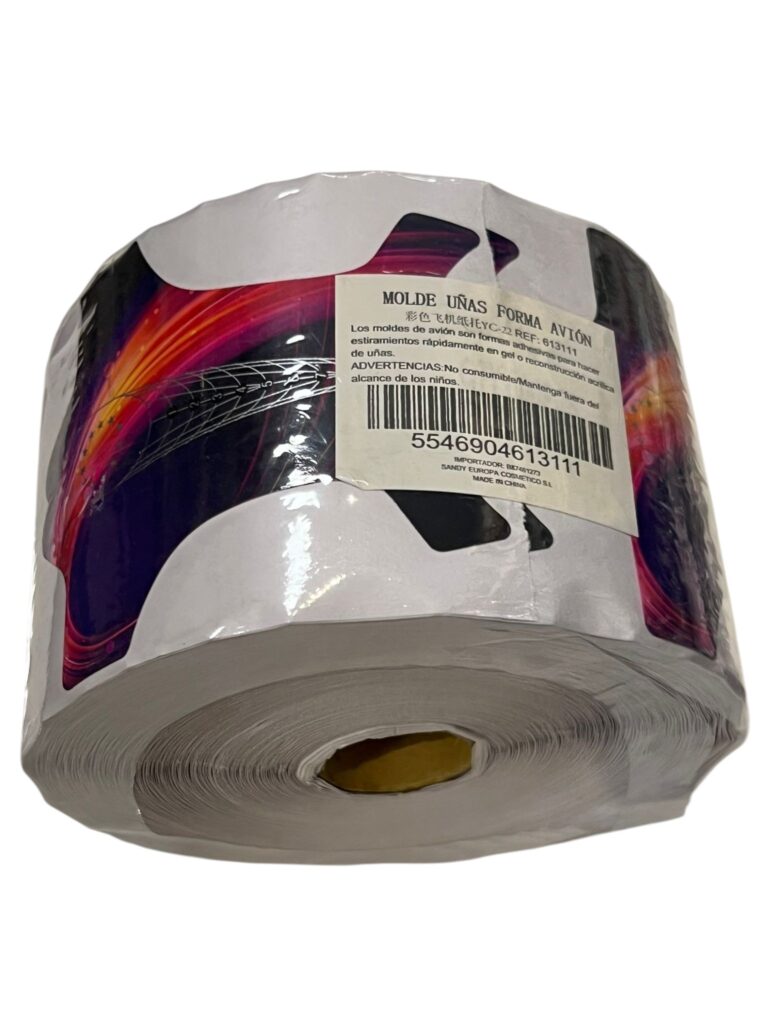 rollo de moldes adhesivos para uñas, específicamente diseñados para crear extensiones con forma de estilete (larga y puntiaguda).
