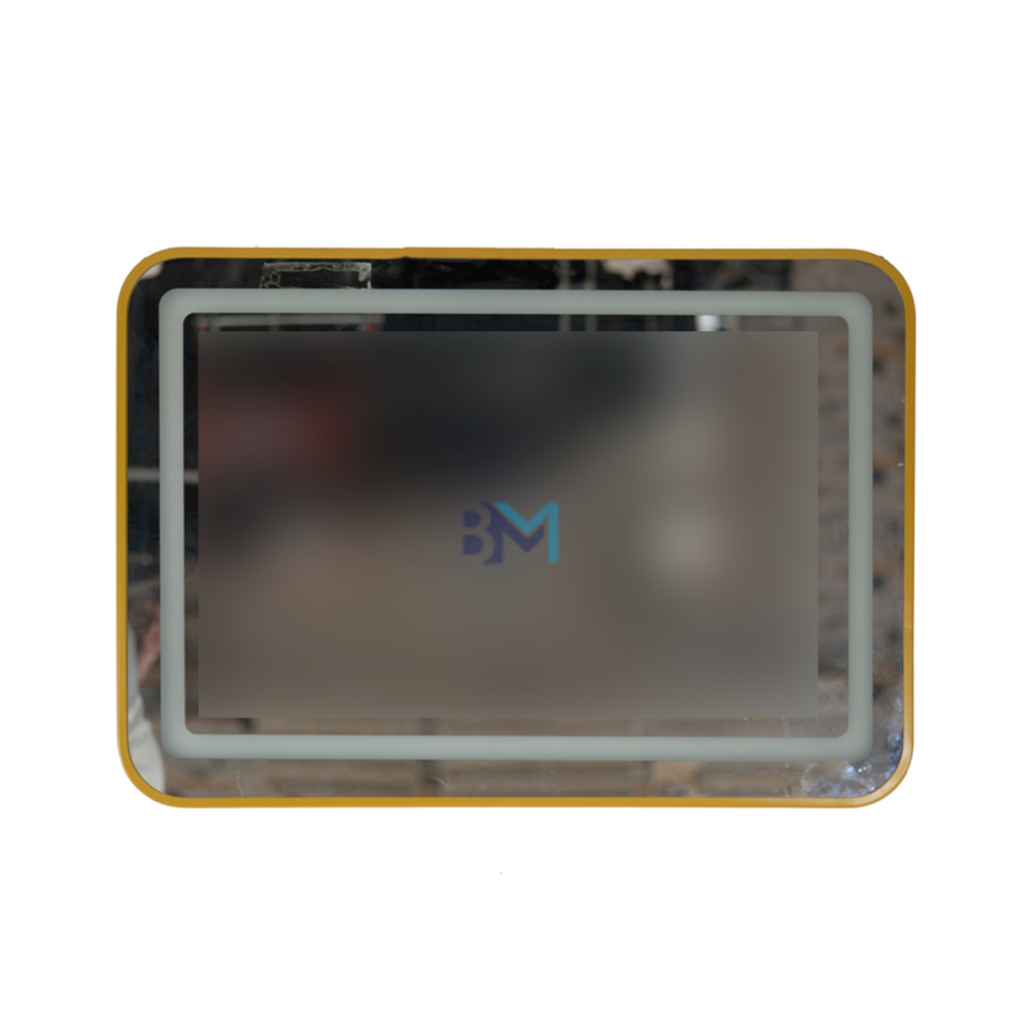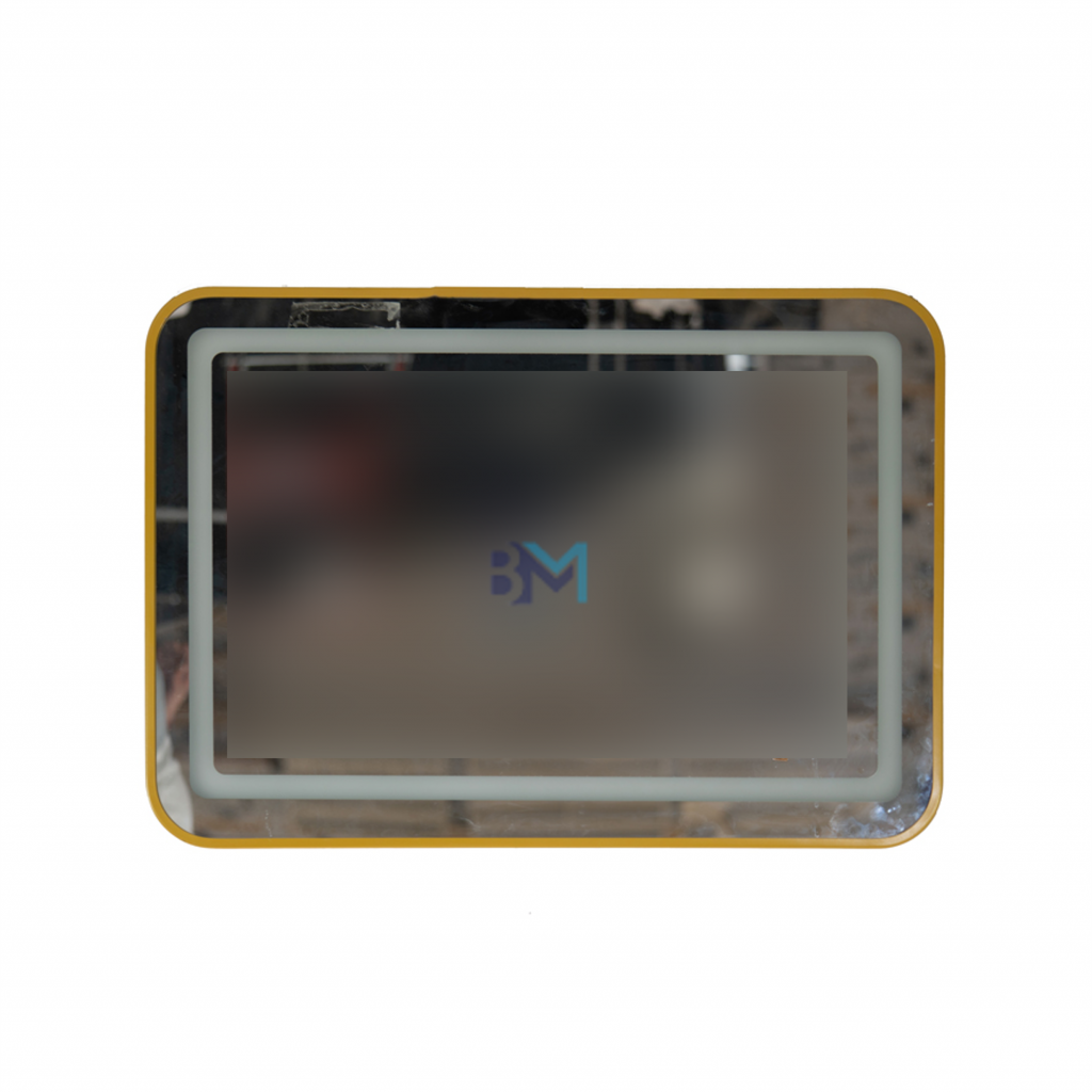Espejo rectangular con marco dorado y luz led