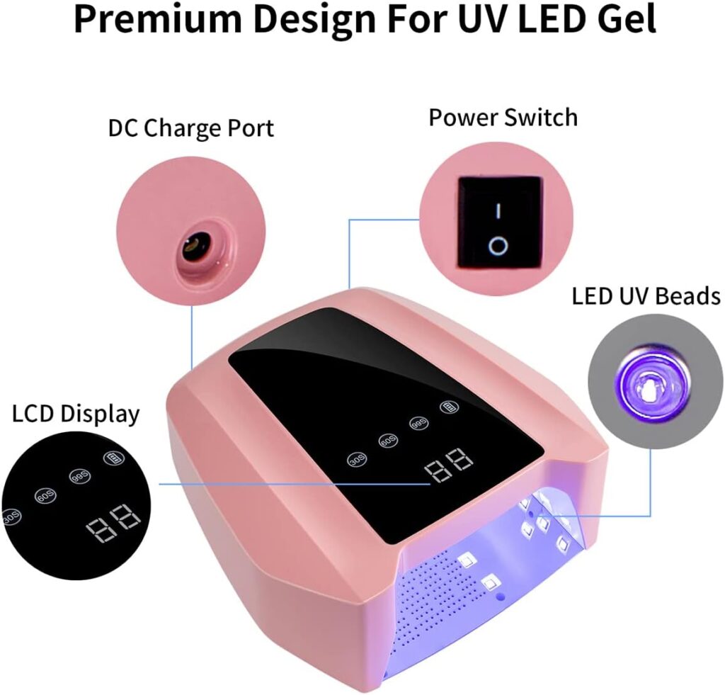 - Diseño inalámbrico recargable para uñas de gel, equipada con una nueva fuente de luz dual UV+LED de diseño profesional.