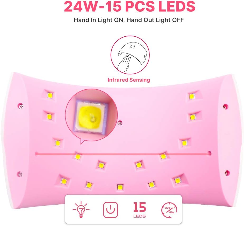 - Secado rápido sin burbujas, potencia de 24 W + 15 luces LED de secado rápido y eficiente. Fuente de luz dual de larga duración.