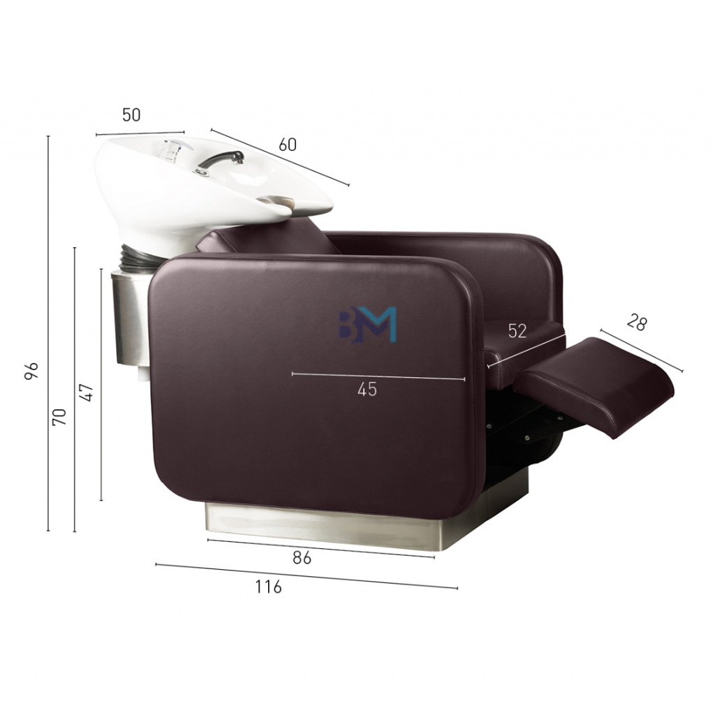 - Lavacabeza (alto x ancho x largo): 96 x 70 x 116 - 144 cm