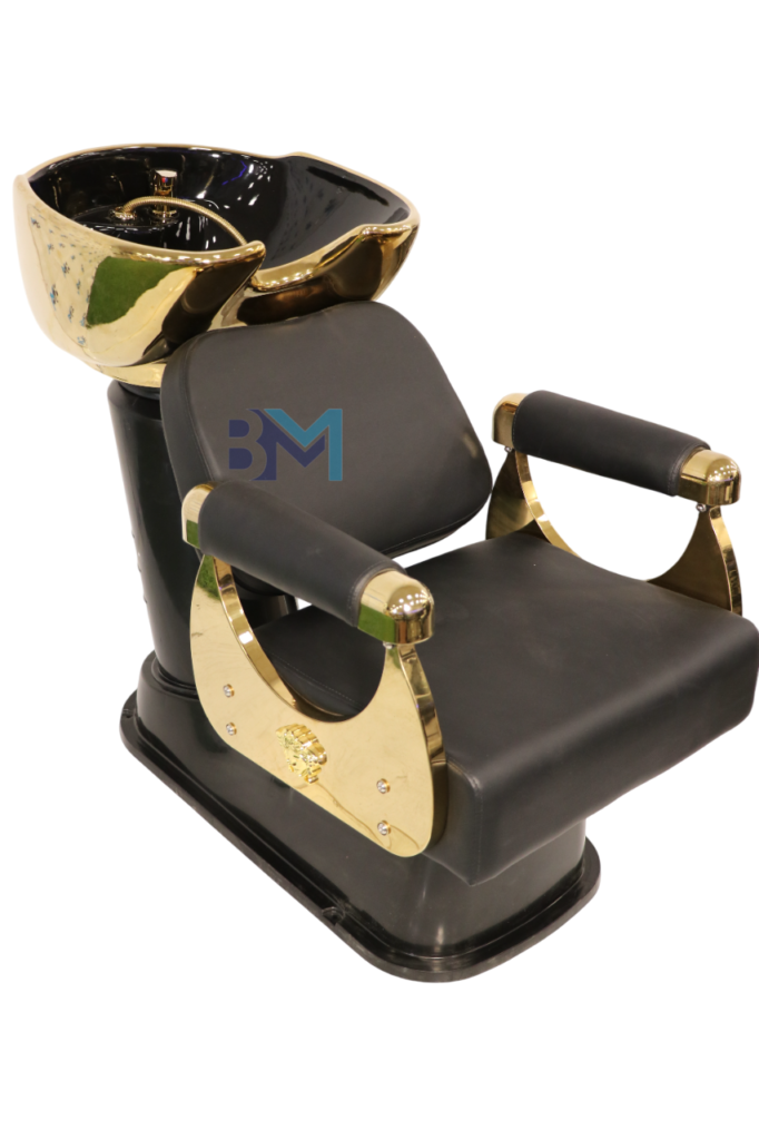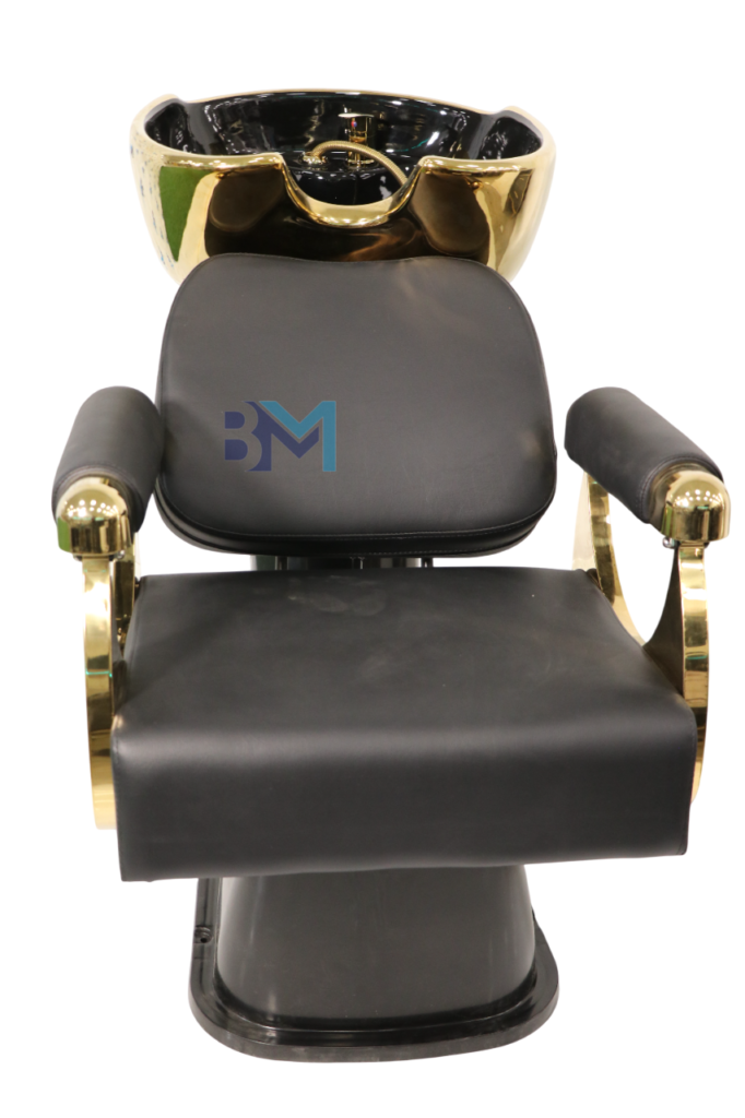 Lavacabezas negro y dorado con apoyabrazos acolchados