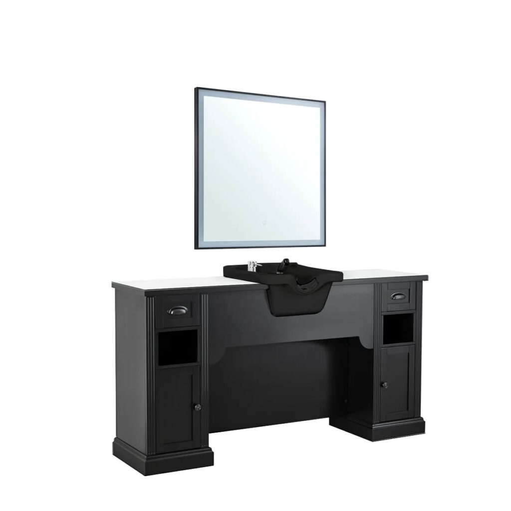 • Estructura de chapa de madera natural con molduras de madera maciza y barnizado color negro.
