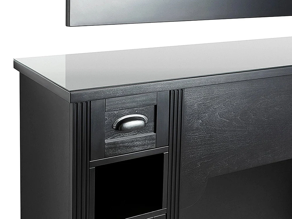 - Estructura de chapa de madera natural con molduras de madera maciza y barnizado color negro.
