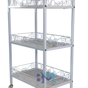 65.00 €Carrito auxiliar de metal en color blanco con tres estanterías ideal para centros de estéticas y belleza.