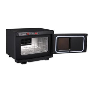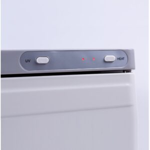 Calentador y esterilizador con luz ultravioleta ideal para mantener las toallas en optima temperatura y esterilizadas. Es un dispositivo esencial para la higiene de los accesorios de trabajo utilizados en los salones de belleza, manicura pedicura, peluquería y barbería.
