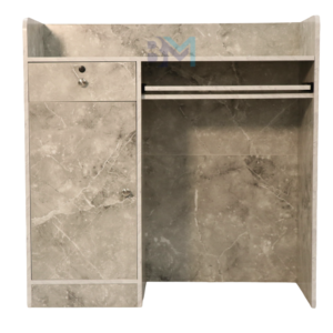 Mostrador de recepción gris ofrece un diseño elegante tipo mármol, ideal para combinar con cualquier estilo. Cuenta con amplio espacio de almacenaje y cajonera con llaves.