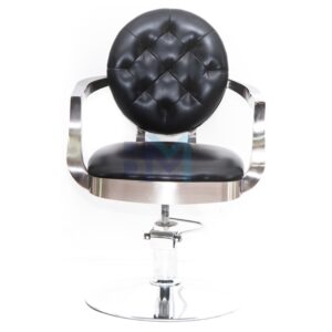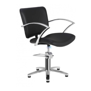 Silla de peluquería con un diseño clásico fabricada en polipiel de PVC de alta calidad retardante al fuego. Interior de PU inyectado con estructura metálica.